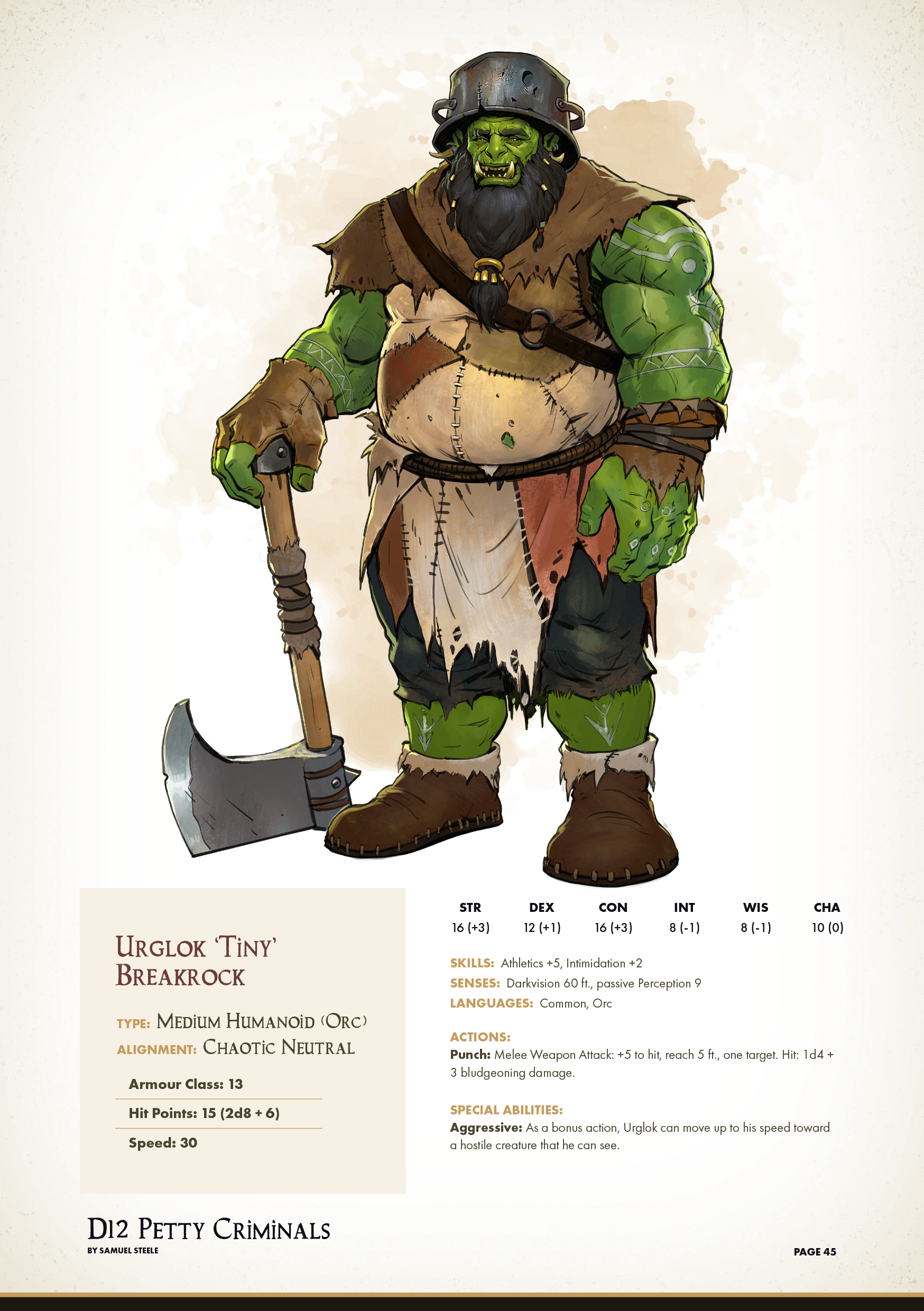 - Complete Character Sheets: Each criminal comes with detailed character sheets compatible with 5E Dungeons & Dragons, including stats, backgrounds, and a visual description.