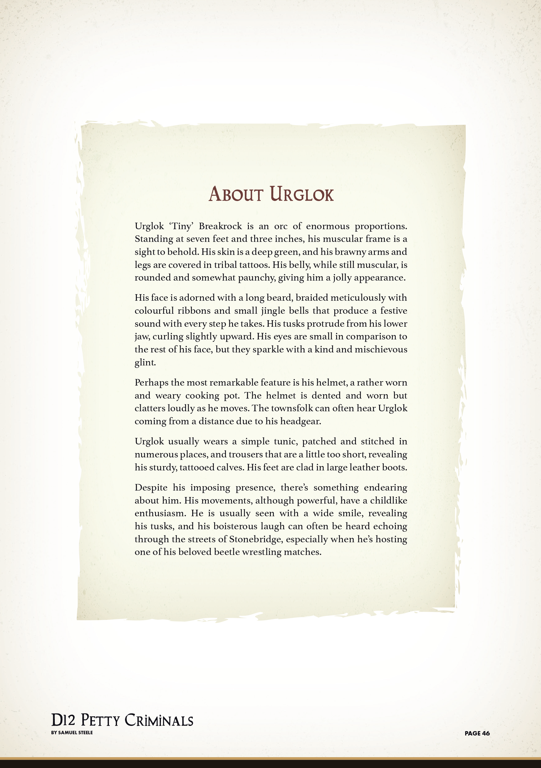 - Memorable Encounters: From joyriding halflings and pie thieves to an Orc running illegal beetle races, each character adds unique flavor to your game.